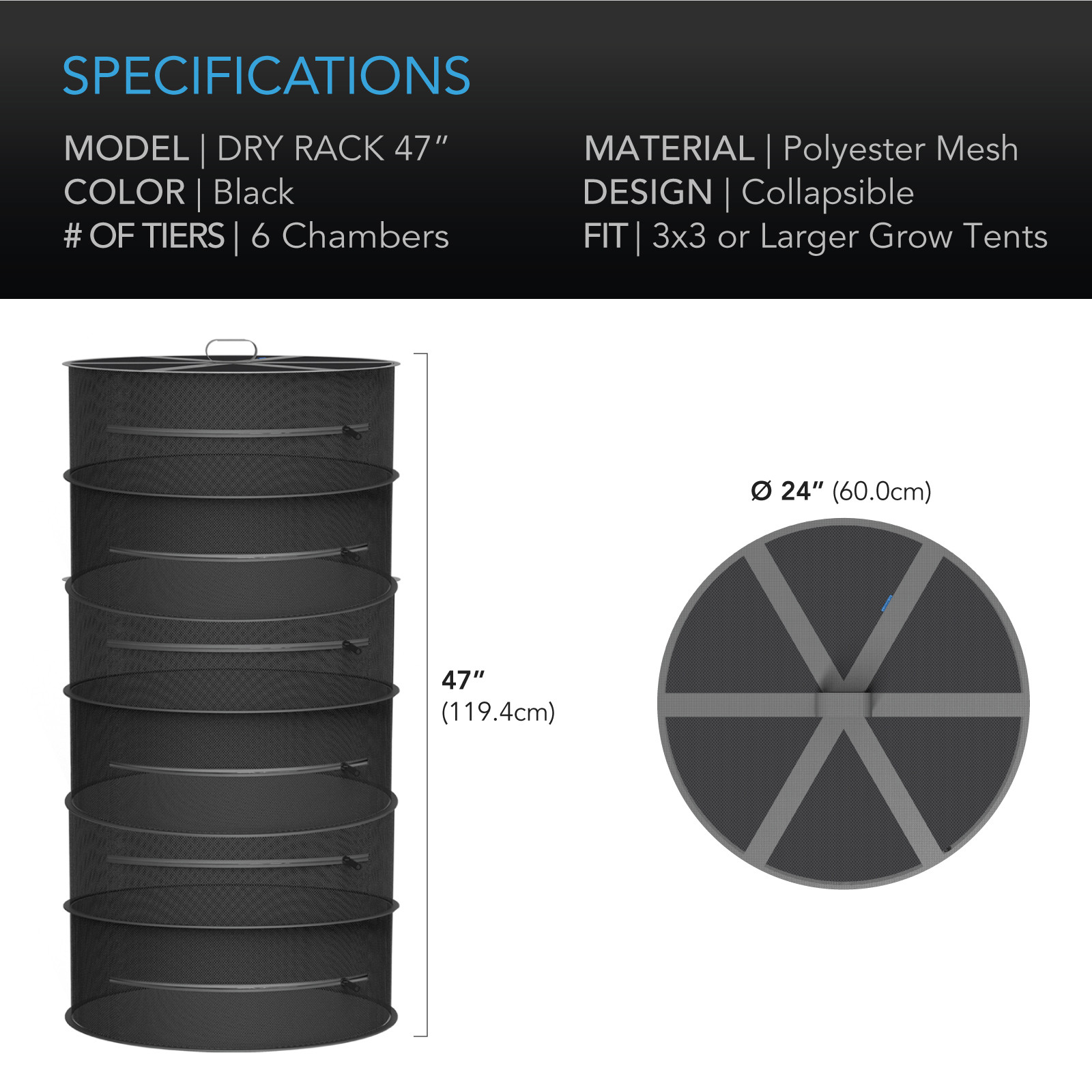 - 6 Tiers | 24 in. Diameter | Fits 3×3 or Larger Grow Tents | Includes Hanging Hook & Carrying Bag